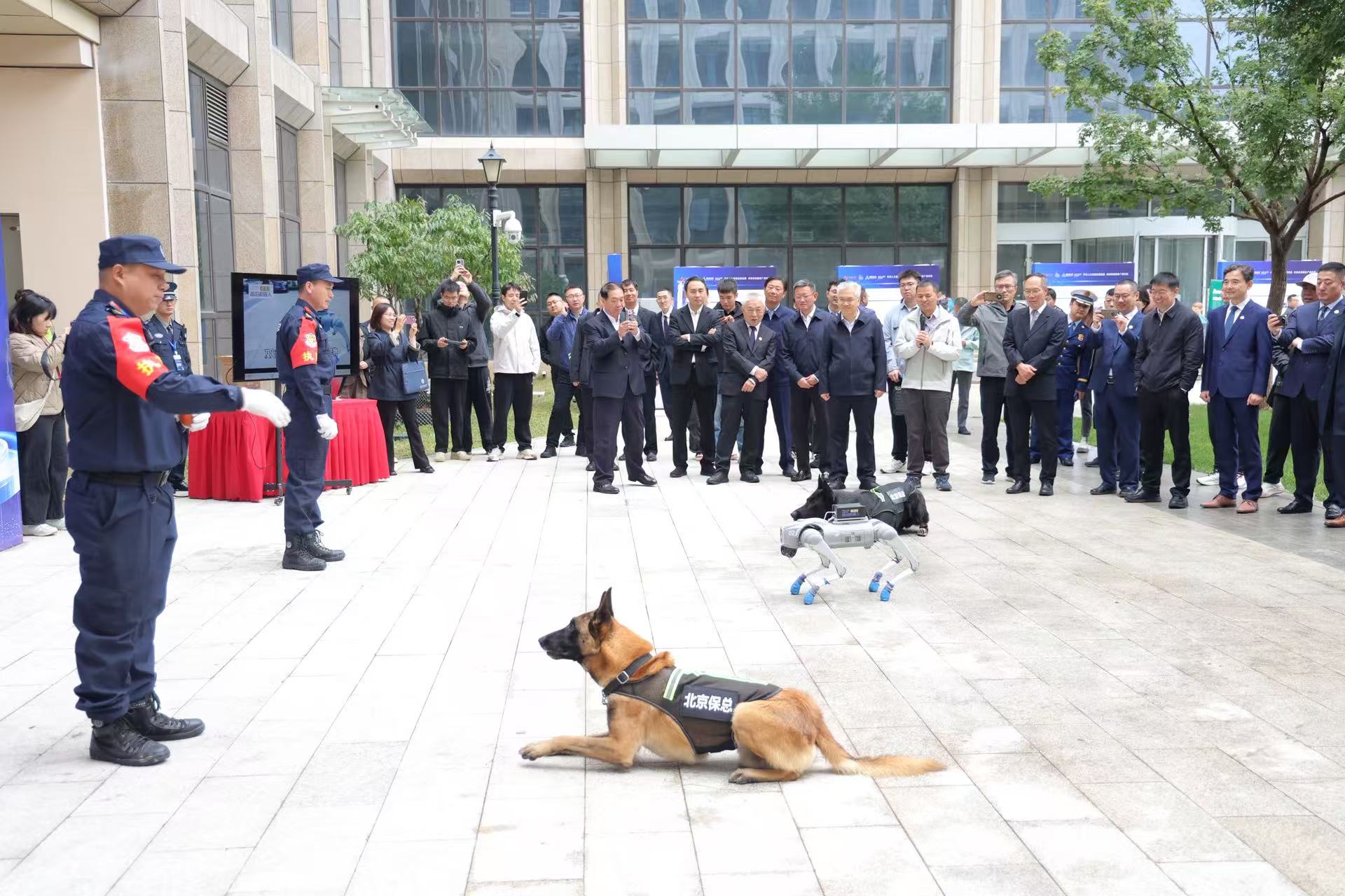 活动现场设置的展示区也成为一大亮点,多项融合人工智能的安保技术进行了实景演示。缉毒搜爆犬与具备先进传感功能的机器犬协同完成可疑物品排查任务,智能安防机器人展示了自主巡逻与实时隐患识别能力,全链路押运管理系统则对车辆动态与押运环境进行了精准还原与监控。这些生动场景吸引了众多与会者驻足交流,直观地展现了“人工智能+安保”的广泛应用前景。