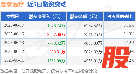 本站消息天猫配资端,6月17日,惠泰医疗(688617)融资买入1584.92万元,融资偿还2861.66万元,融资净卖出1276.74万元,融资余额6264.52万元。